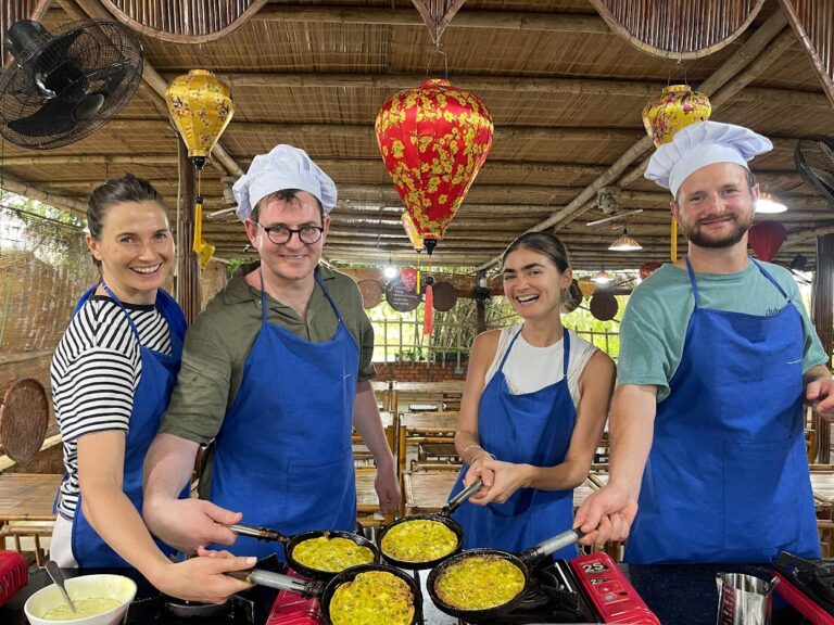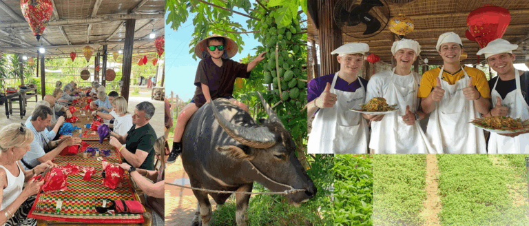 Bicycle ride Family friendly Free pickup by bikes Herb garden tour Plate decoration Tra que specialty Vegan and vegetarian option Welcome drink